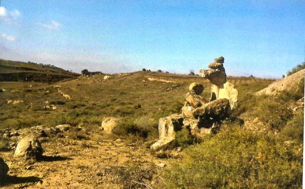 Esa escultura la compuso y recompuso el Caminante del Alma en sus caminatas durante años y años, hasta que un día la acción del tiempo tuvo más constancia y volvió a fundir las piedras con el suelo. En los alrededores de esas piedras con vocación de escultura buscan hoy tomillo los conejos y la calandria se posa a piropear a su amante de campanario.